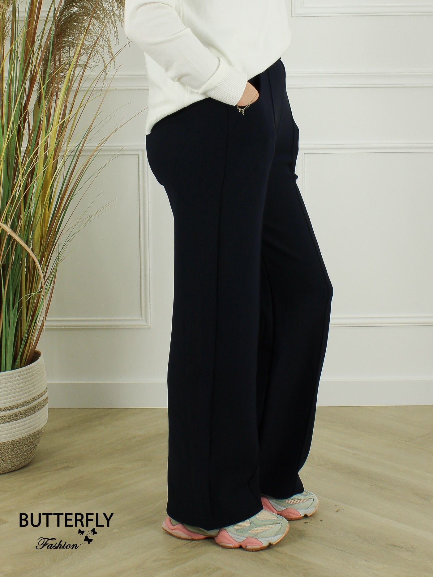 Elegante stretch broek met elastiek in de taille. Deze broek is gevoerd met een zachte fleece en gemaakt in een mooie kwaliteit met stretch. De broek heeft een naad over het been en 2 steekzakken.