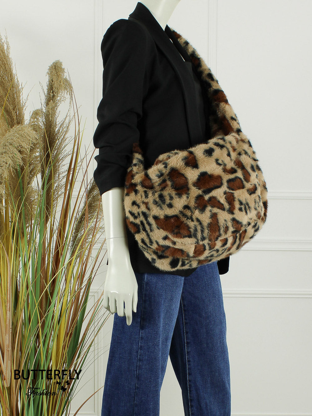 Deze superhippe faux fur schoudertas met trendy animal print is een must-buy! Deze royale, zachte tas kan door het lange hengsel gemakkelijk als crossbody gedragen worden. Geheel gevoerd en afsluitbaar met een rits.