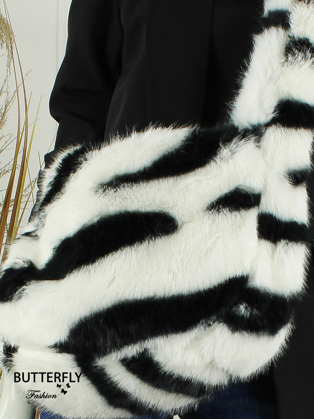 Deze superhippe faux fur schoudertas met trendy animal print is een must-buy! Deze royale, zachte tas kan door het lange hengsel gemakkelijk als crossbody gedragen worden. Geheel gevoerd en afsluitbaar met een rits.