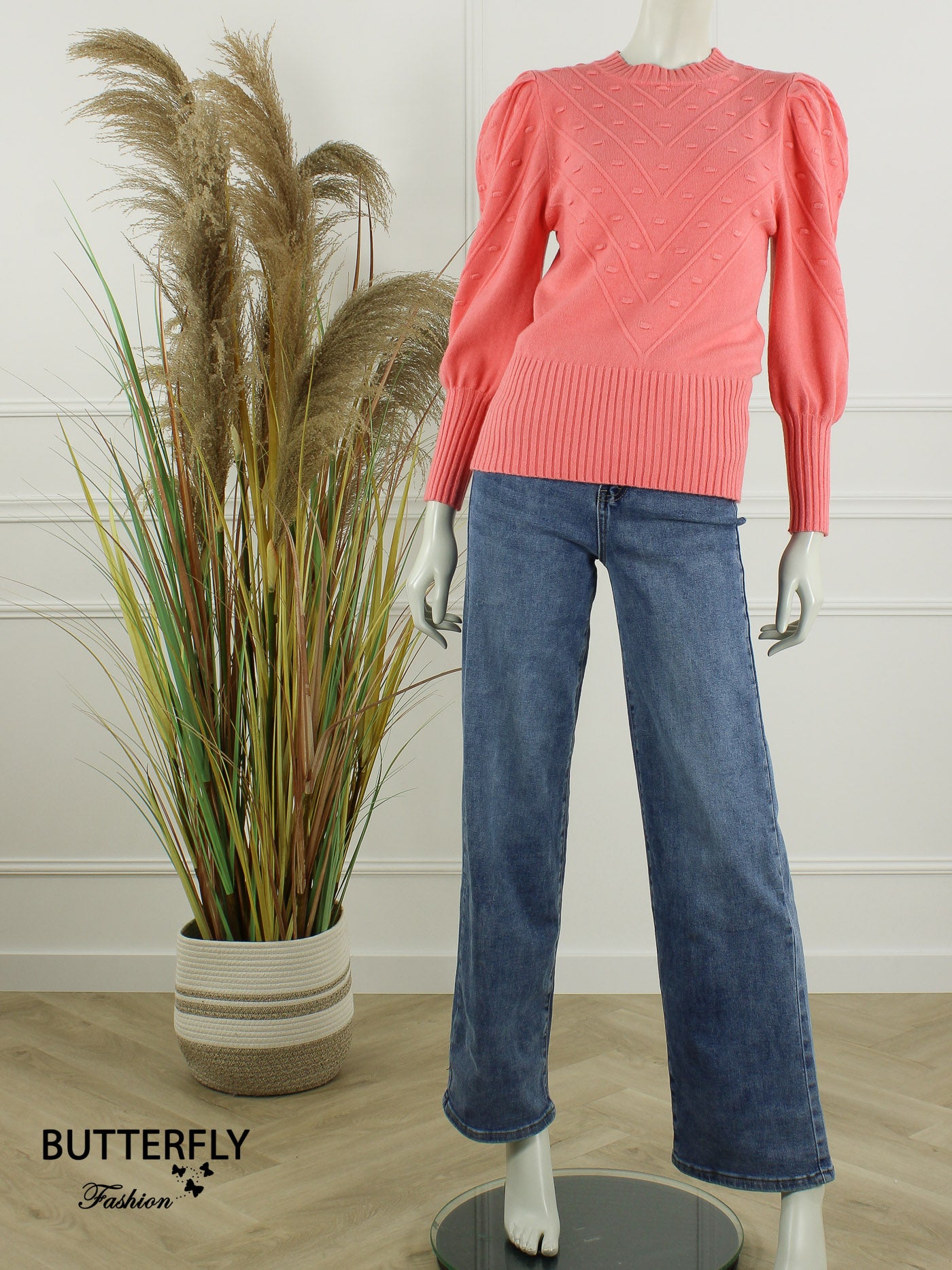 Top/trui in mooi zacht breisel met leuke pofmouw en ingebreid motief. Combineer haar met een mooie jeans.